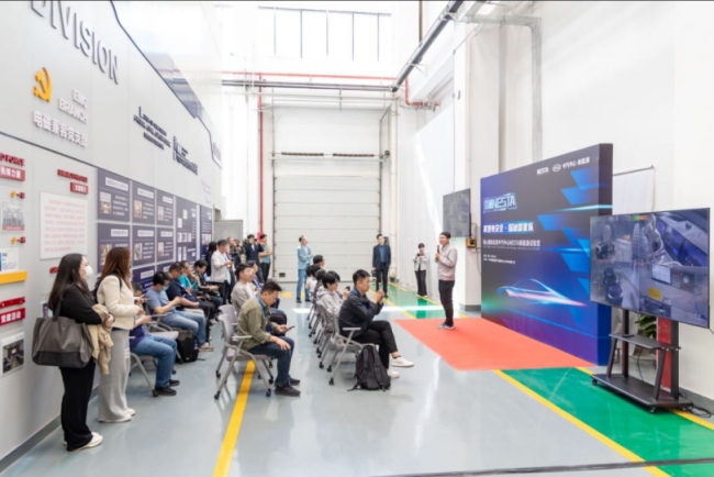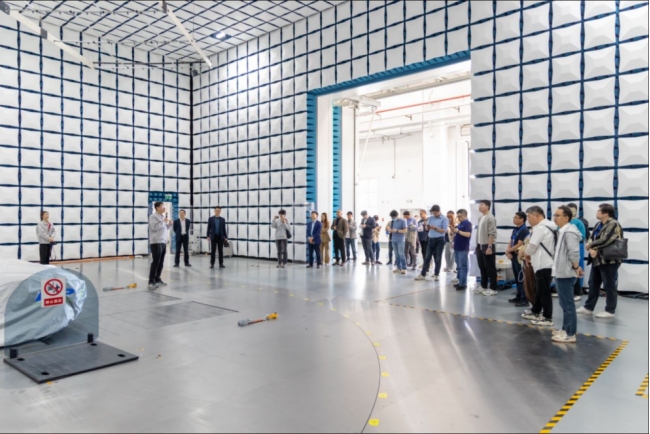 作为本次探访活动的重点环节之一,与会嘉宾不仅参观了开展NESTA验证项目的电磁兼容试验室、充电技术试验室、电驱电控试验室、能源系统试验室、火烧试验室等重点试验室,同时,还在亚洲首个电磁兼容技术验证混响试验室中,见证了一次“整车电磁混响室测试”试验。