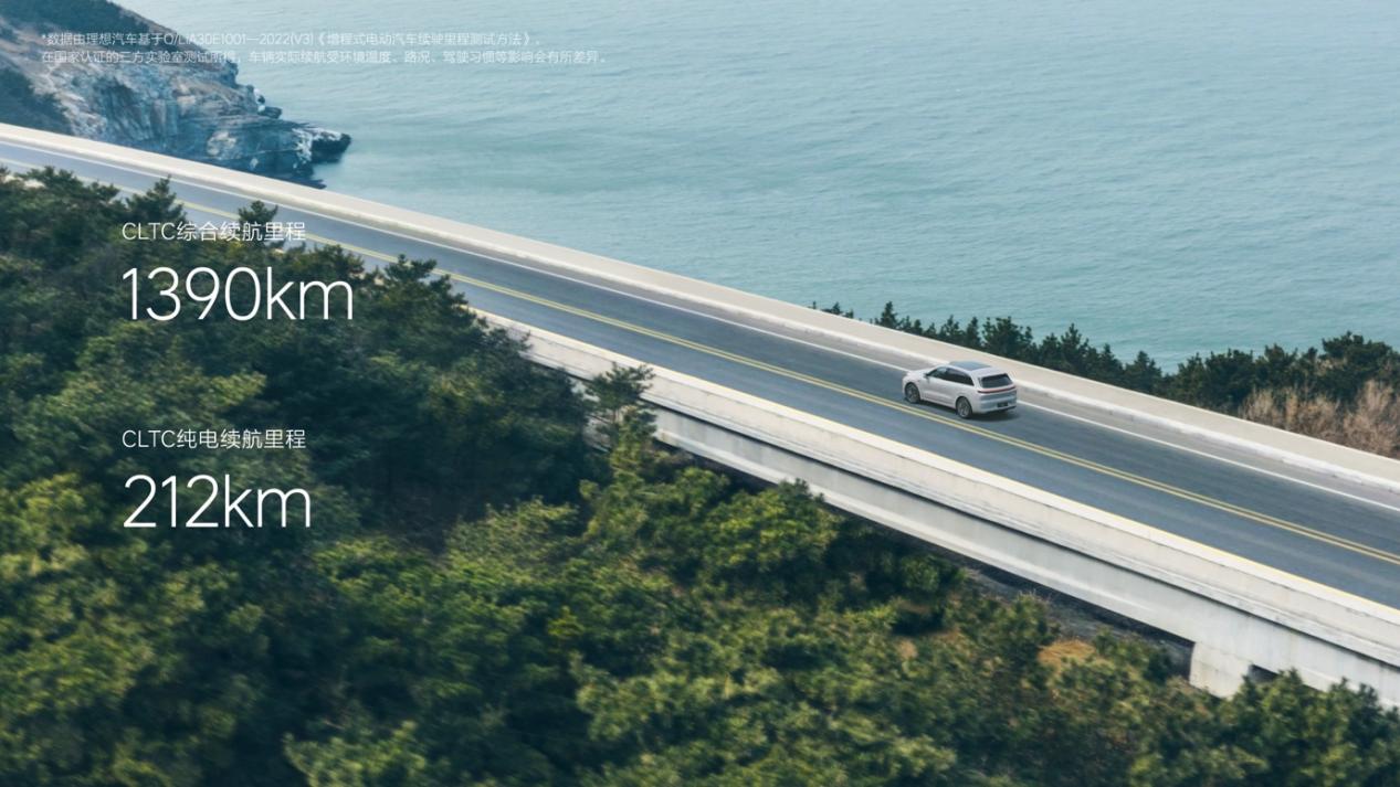 一台为年轻家庭用户打造的家庭主力用车,既要有优秀的动力性能,又要能走得远。理想L6搭载基于最新一代磷酸铁锂电池打造的增程电动系统,1.5T四缸增程器,搭配36.8千瓦时电池、60升油箱,实现长综合续航——CLTC综合续航里程1390公里,CLTC纯电续航也达到212公里。