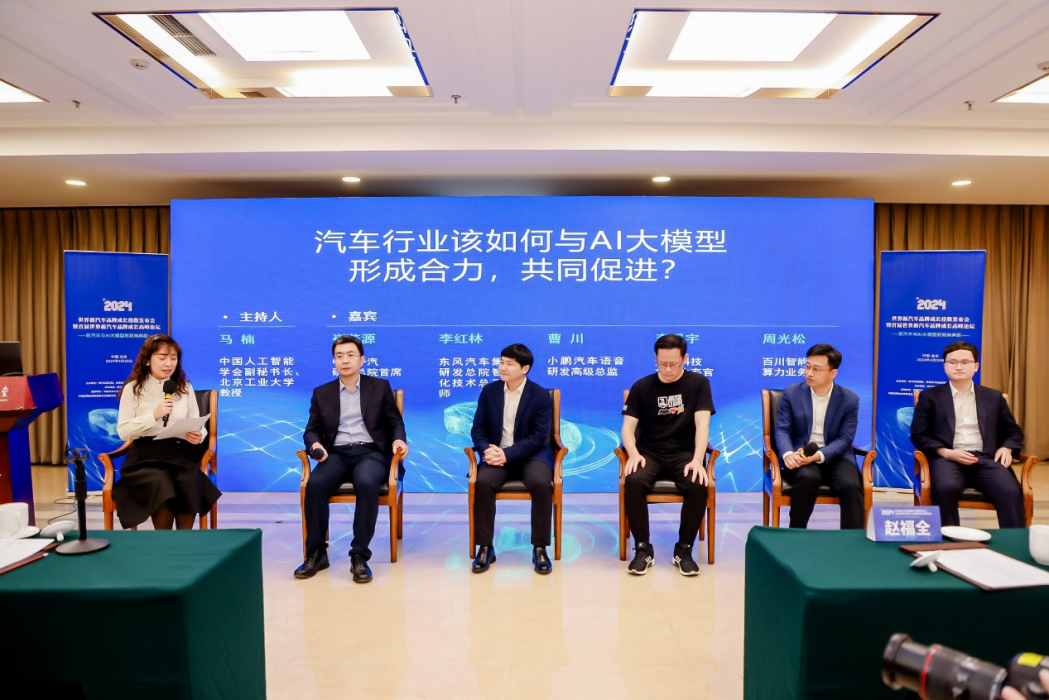 在论坛的圆桌讨论环节,中国人工智能学会副秘书长、北京工业大学教授马楠作为主持人,与中国第一汽车集团有限公司研发总院首席崔茂源、东风汽车集团有限公司研发总院智能化技术总工程师李红林、小鹏汽车语音研发高级总监曹川、燧原科技首席生态官李星宇、百川智能算力业务总监周光松等嘉宾,围绕着“AI大模型是否会给汽车行业带来颠覆性的影响,是否将全方位改变汽车业运行逻辑”等话题进行了热烈的讨论。