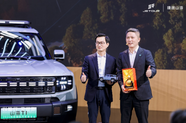 车展发布会上,因一辆“王老吉伪装车”引发的猜测尘埃落定。捷途品牌事业部营销中心总经理张纯伟与广州王老吉大健康产业有限公司副总经理叶继曾现场公布签约,达成跨界战略合作。此前的“王老吉伪装车”正是基于捷途山海L6打造,拉开双方合作的序曲。