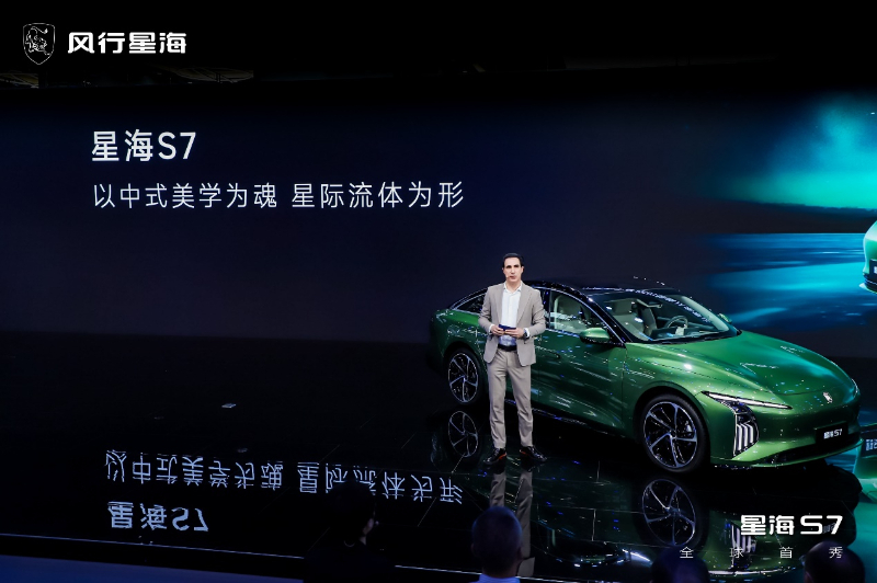 在发布会上,风行星海外籍造型总监Chris介绍:“星际流体理念源于浩瀚宇宙流淌的绚丽‘景观’”,设计灵感取其星云曲线的自由与洒脱,与华夏之魂的丝绸之路相融合,让穿越千年的繁华与瑰丽,凝结智慧,化作时间的礼物呈现给用户。”据星海S7产品总监潘晖介绍,星海S7的外观设计不仅从美出发,更为极致的风阻与极致能耗而考虑。