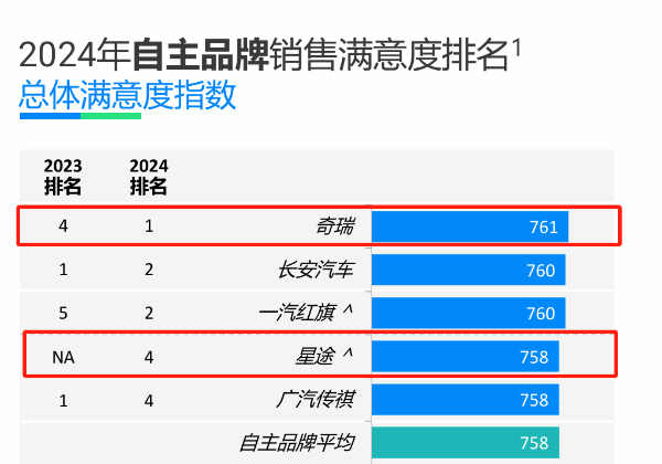 奇瑞与用户之间的情感纽带越系越紧密,用户满意度、幸福感持续提升。在7月17日的“一起CHERY”2024奇瑞全球粉丝节上,来自全国各地的车主们齐聚一堂,共同见证了奇瑞全新用户生态平台“一起CHERY”的发布。在8月1日J.D. Power发布“2024中国销售服务满意度研究SM(SSI)”中,奇瑞品牌荣获自主品牌销售服务满意度第一,星途品牌位列第四。