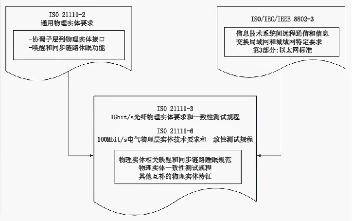 ISO21111-3标准通过明确塑料光纤(GEPOF)实体的相关服务接口的内在关系,概述唤醒与同步链路睡眠管理实体(WUSME)子层、快速转发实体(FFME)子层和调解子层的各项参数、相关功能及其状态图,为1Gbit/s传输速率下车载以太网系统的实施提供了标准化的基础指南。