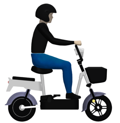 CBNAO场景下,电动自行车以15km/h的速度以与车辆行驶方向垂直的方向移动。VUT分别以20km/h、40km/h和60km/h的速度测试。碰撞位置在50%处。该场景主要考察车辆系统在直行中,对近端横穿的电动自行车的识别及响应能力。