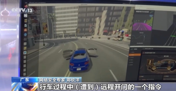网络安全专家邓钦洋表示,黑客通过网络入侵到车辆之后,进而进行横向移动,对零部件的相关漏洞进行利用。用户正在正常驾驶车辆,我这里就可以模拟黑客对车门系统进行远程的攻击,实现远程开门的一个操作,系统检测到了行车过程中遭到远程开门的一个指令,那么在真实的驾驶过程中,我们的车门被打开是非常危险的事情。