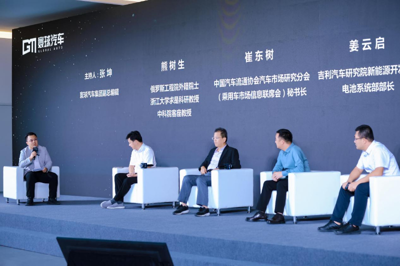 在主题沙龙环节中,寰球汽车集团副总编辑张坤作为主持人,熊树生、崔东树、吉利汽车研究院新能源开发中心电池系统部部长姜云启、中汽中心新能源检验中心能源系统部部长刘磊作为嘉宾进行了分享。几位专家围绕“短刀电池是不是磷酸铁锂电池的未来”、“固态电池、半固态电池、锂电池未来的关系”、“锂电池使用寿命与电动车保值率之间的关系”以及“动力电池的下一个风口”等话题展开了深入的讨论: