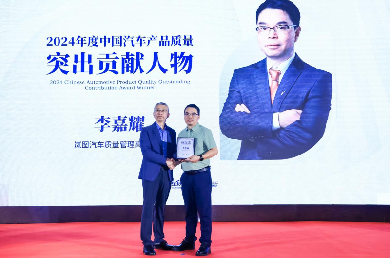 9月24日,2024年度中国汽车产品质量表现研究AQR结果发布暨颁奖典礼在北京举行,此次评选中岚图梦想家凭借优秀的产品表现和良好的用户口碑,获得中国汽车产品高端插电式混动车质量表现第一名。岚图质量管理高级总监李嘉耀获得2024年度中国汽车产品质量突出贡献人物。