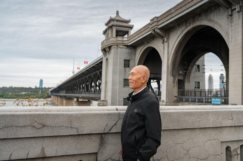 “一桥飞架南北,天堑变通途”在武汉长江大桥纪念碑前,陈爷爷用陕西话一字一句地读出纪念碑上的词句。走在大桥上,陈爷爷说,“跟老连长讲得一模一样,桥上可以走路,还有火车。很壮观!”“当年和我一起当兵的有20多名战友,如今还有几个健在,来看长江大桥是我的心愿,也是他们的心愿!”陈爷爷提到。