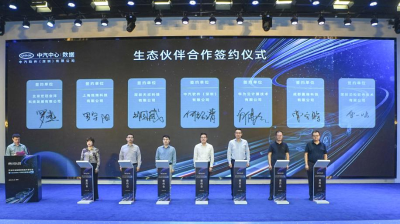 随后,中汽软件(深圳)与华为云、深圳天洑、成都赢瑞、上海烜翊、深圳泊松、北京世冠等合作伙伴举行了签约,在系统仿真产品研发和应用推广方面达成合作。