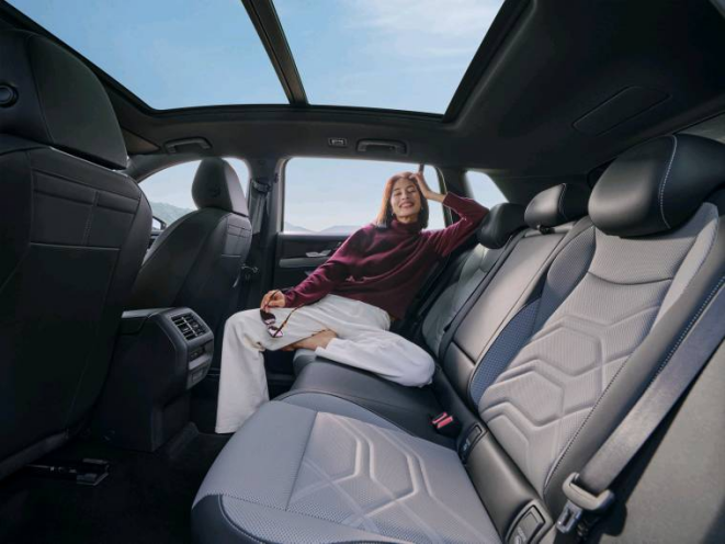 除此之外,全新探岳L还配备了云感座椅,完美贴合中国人体型特征,前排座椅8向调节,可满足不同身高、体型的乘坐需求;后排座椅座垫长度达500mm,为腿部提供充足的支撑度,且支持4-6分翻转,靠背角度调整范围112-122°,可满足不同乘客、不同场景下的需求,在空间进化的基础上,舒适性能全面飞跃。