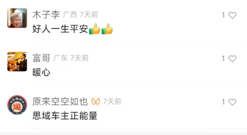 这一暖心举动恰好被监控记录了下来,相关视频经由阳江公安公众号、新华社视频号发布上网后,引来大量网友关注和点赞。网友纷纷在视频下留言,“这个社会充满着爱”“谢谢好心人”“思域车主好样的” “为好心人的做法点赞” “思域车主正能量”“愿善良的人一切安好!”