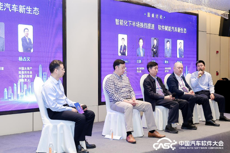 在“金融创新,软件赋能”主题论坛上,中国汽车工业协会副总工程师、软件分会秘书长王耀,国联证券研究所副所长、汽车行业首席分析师高登,智己智驾项目总监王康,南京市一汽创新基金投资管理中心(有限合伙)执行董事卢超,交信(浙江)信息发展股份有限公司首席专家黄东和中国太保产险商用车业务风险管理部负责人、资深经理杨占义全面探讨了如何在主体授信、供应链融资等方面充分发挥金融赋能优势,以及软件技术如何优化金融服务流程,提升风险管理效率、增强用户服务体验等课题,并进行了圆桌讨论。论坛由证券时报主任记者韩忠楠主持。