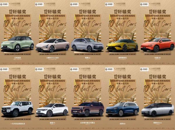 其中,吉利星愿、一汽丰田全新普拉多、小鹏MONA M03、极氪7X、理想L6、北京现代第五代胜达、路特斯繁花、问界M9、乐道L60、理想MEGA被评为年度十佳汽车。