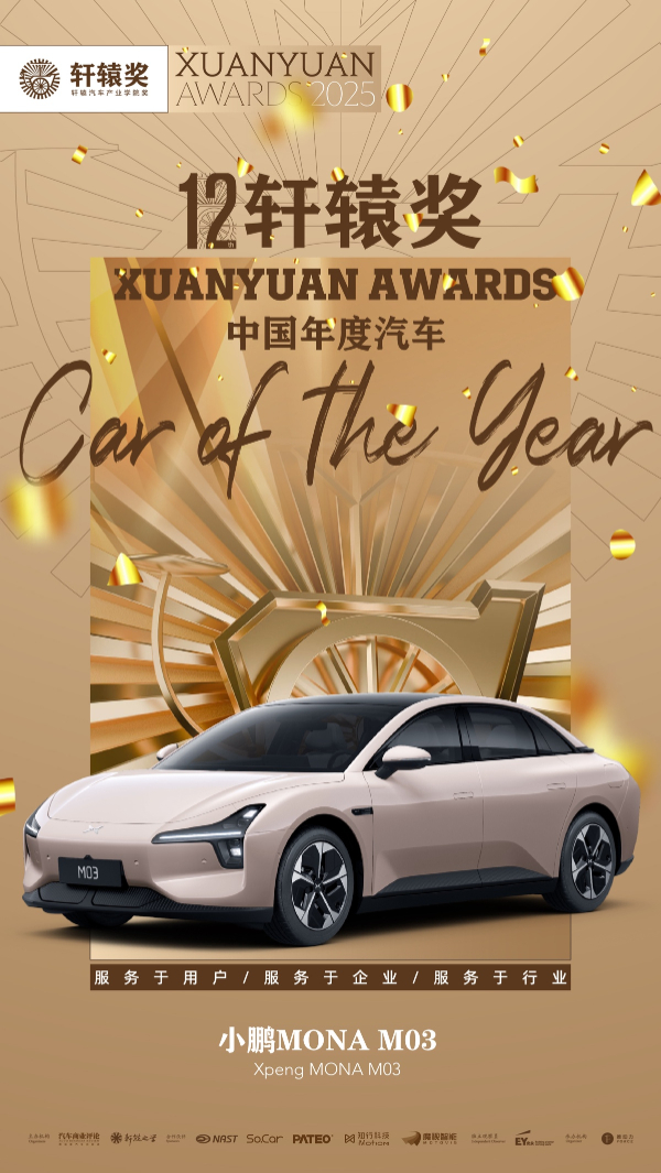 其中,小鹏MONA M03获得了第十二届轩辕奖年度汽车的殊荣。