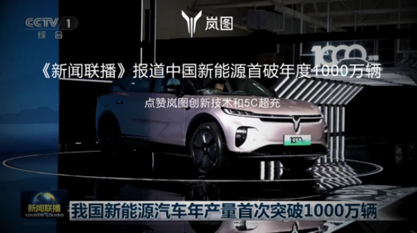 这是两个月内,岚图汽车第二次出现在央视节目中。此前,11月14日,2024年中国新能源汽车1000万辆达成活动在岚图汽车云峰工厂盛大举行,岚图知音作为1000万辆中国新能源汽车下线的代表车型,分别被《朝闻天下》《新闻30分》《新闻联播》等节目报道。