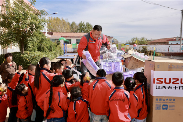 阳泉江西五十铃经销商亲自驱车将爱心物资送至盂北学校。照片拍摄于2023年10月