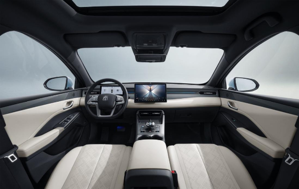 环抱式阔境悬浮座舱采用经典对称结构,搭配未来感满满的横向贯穿式布局,为整个座舱定下科技简洁的基调。王朝新款方向盘、全新BYD Heart电子换挡杆,功能分区更合理,造型更美观。此外,钢琴烤漆面板升级为磨砂材质,仪表台增加立体装饰,门板处融入“锁子纹”,于细节处彰显豪华。