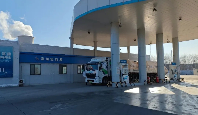 图为犀重氢燃料重卡在莱芜加氢站补能