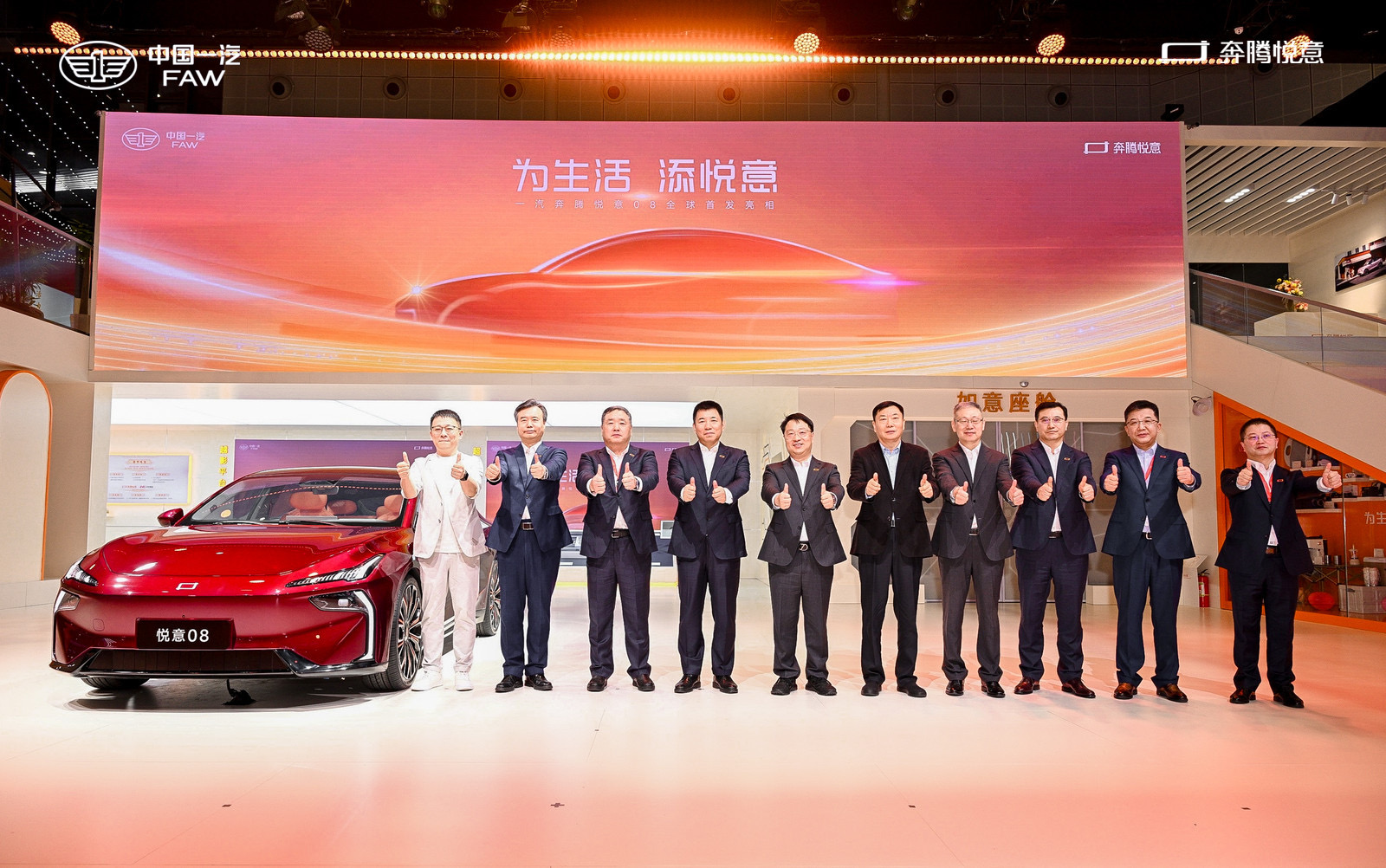活动现场,中国第一汽车集团有限公司董事、总经理、党委副书记刘亦功,中国第一汽车集团有限公司总会计师方世力等集团负责同志为奔腾悦意站台,全力赋能奔腾向新。
