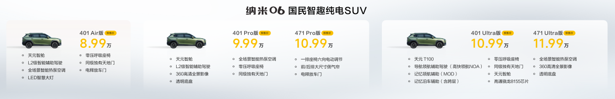 智趣新天地,全民皆共享。4月28日,东风纳米旗下“国民智趣纯电SUV”东风纳米06在成都开启预售,共推出5款配置,预售价格为8.99万元-11.99万元。目前,东风纳米06已到店无需等待,并带来下订266元抵2066元、电动尾门和全景天幕限时送、至高600万保障服务的智趣守护险限时免费送、多彩车漆限时优惠等智趣4重礼。