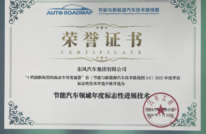 获得中国汽车工程学会评选的“节能汽车领域年度标志性技术”
