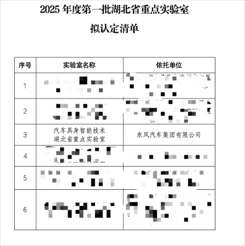 汽车具身智能技术湖北省重点实验室相关信息进行公示