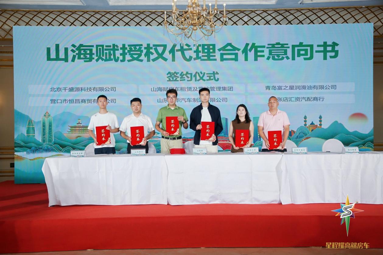 最后,山海赋集团房车租赁运营集群总裁赵典还与北京千盛源、山东希华、青岛富之星、营口市恒昌、张店汇资等5家房车租赁授权加盟企业代表,签订“山海赋授权代理合作意向书”,除此之外山海赋集团房车租赁运营集群总裁赵典还表示,未来欢迎更多的行业内外伙伴加盟到山海赋租赁运营体系中,山海赋计划未来3年向市场投放3000辆授权代理车源。让房车出游成为更多家庭的新选择。