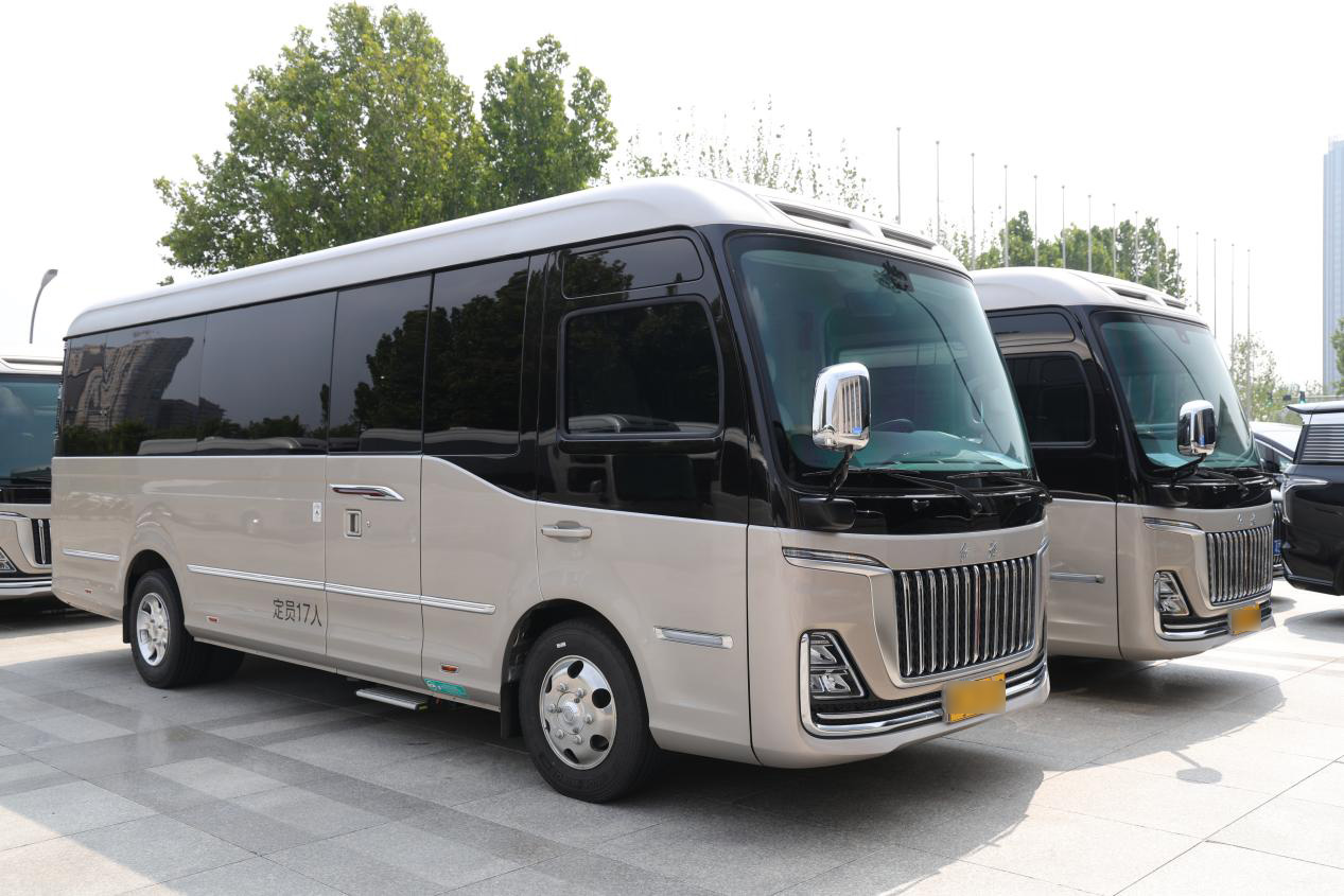 作为红旗品牌最具代表车型,豪华礼宾新旗舰红旗国悦专为高端礼宾场景打造。车身长7295mm、宽2090mm,采用高强钢非承载车身,“九拱”车身结构与“六环”防护设计构建坚不可摧的安全堡垒。同时,国悦搭载自主研发3.0TV6机械增压发动机与采埃孚8AT变速箱,低速动力更强劲,高速输出更平稳。空间表现方面,车内空间达到了同级领先水平,配备可拆卸式簇绒脚垫、真胡桃木办公桌、35L车载冰箱等豪华配置,更提供定制化改装服务,满足国宾接待需求。上市一年来,国悦销量突破1000辆,每新增3辆高端中型客车就有1辆是红旗国悦,市场认可度可见一斑。