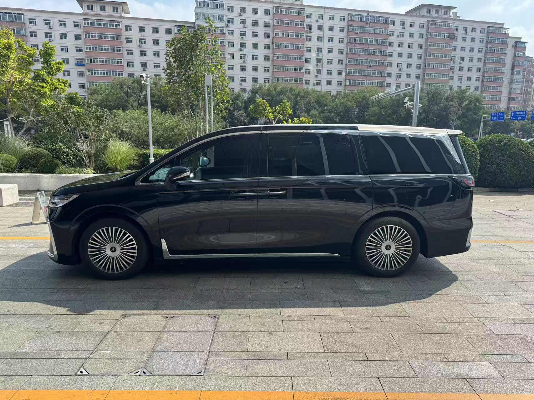 车身侧面采用了更为平直的线条设计,3米长的电镀饰条与悬浮式车顶形成优雅比例,20英寸凌云动感轮毂充满张力。同时,2025款PHEV四驱尊贵鲲鹏版配有电动侧滑门,大幅提升上下车的便利性。