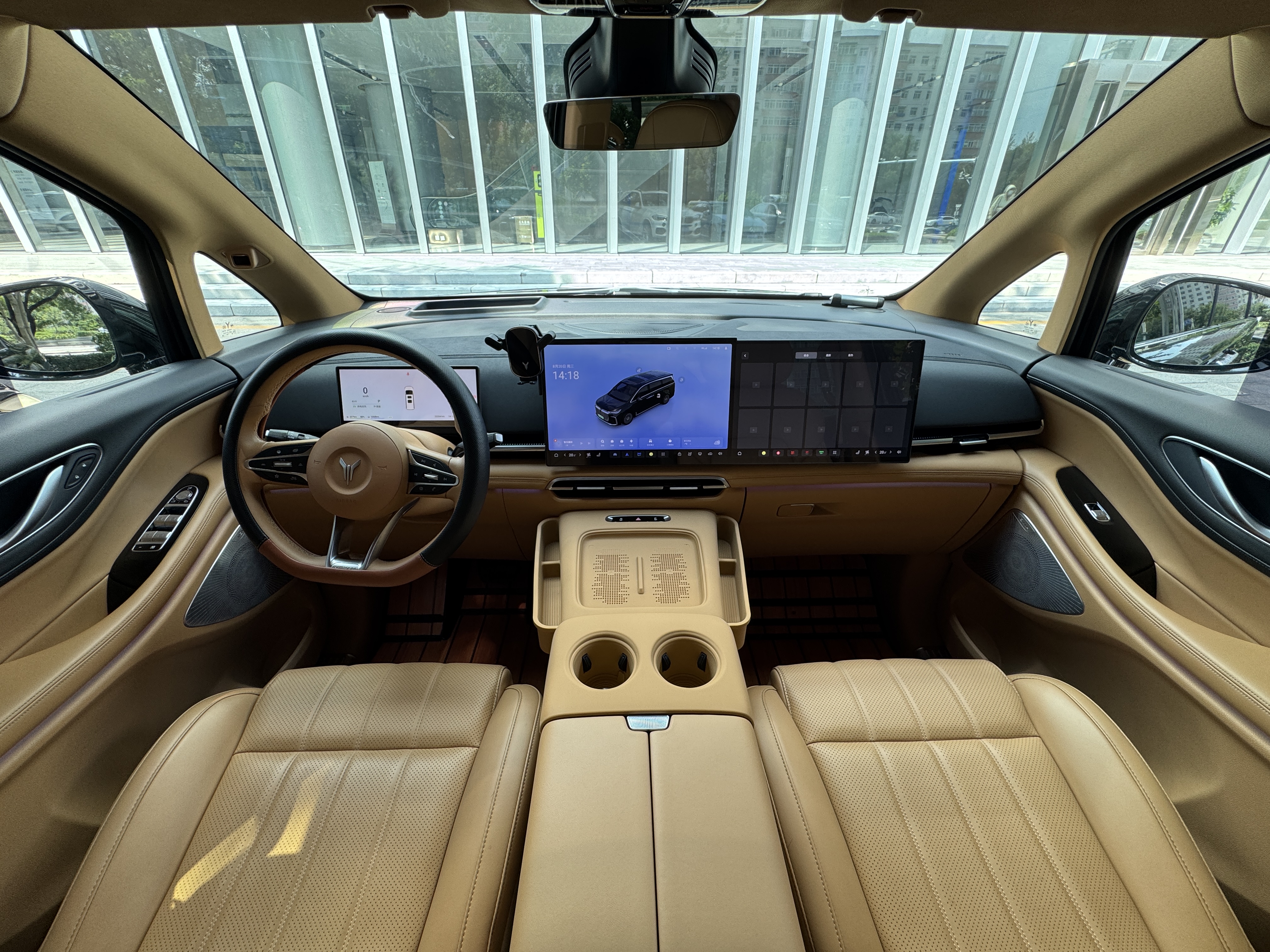 配置方面,10.25英寸全液晶仪表可实时显示车辆信息,中间两块高分辨率的15.4英寸屏集合导航、车联网、OTA升级、面部识别、语音识别、影音娱乐等功能。值得一提的是,下方配备2个手机无线充电板,贴心的设计让前排驾乘者消除了同时无线充电的顾虑。此外,全车22个HiFi级扬声器组成的VOYAH Sound音响系统,配合64色氛围灯营造出沉浸式影音体验。