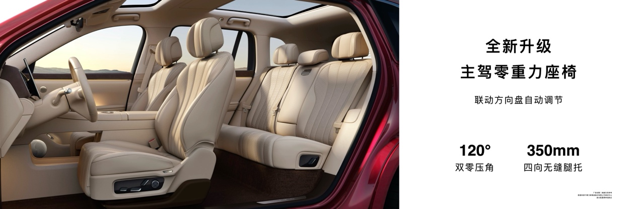 内饰采用对称式布局设计,配备16.1英寸3K悬浮中控屏搭配26英寸WHUD,更有68英寸AR-HUD,行车信息一目了然。副驾升级10.25英寸娱乐屏,并新增17.3英寸后排娱乐屏,新增组队出行与开门守卫功能,全家出行途中共享欢乐时光。