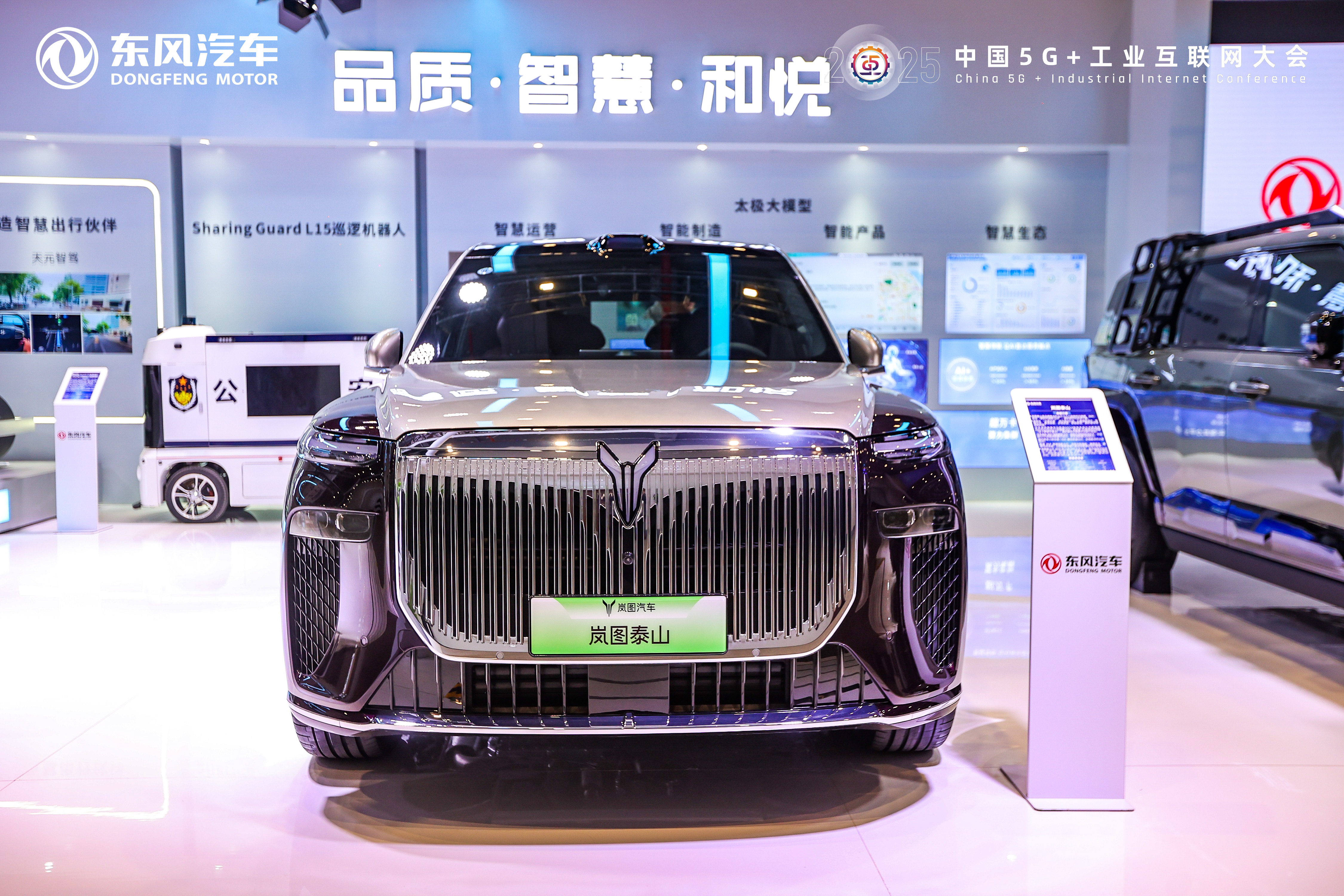 本届大会上,东风汽车以“科技东风 智联未来”为主题,面向公众展出了相关领域的探索实践成果,携3款整车产品东风岚图泰山、东风猛士M817 Max+、东风奕派007+,4项科技展品核心控制器及自主芯片,天元智能(含天元架构、天元智舱、天元智驾),无人警务巡逻车,及太极大模型亮相大会。