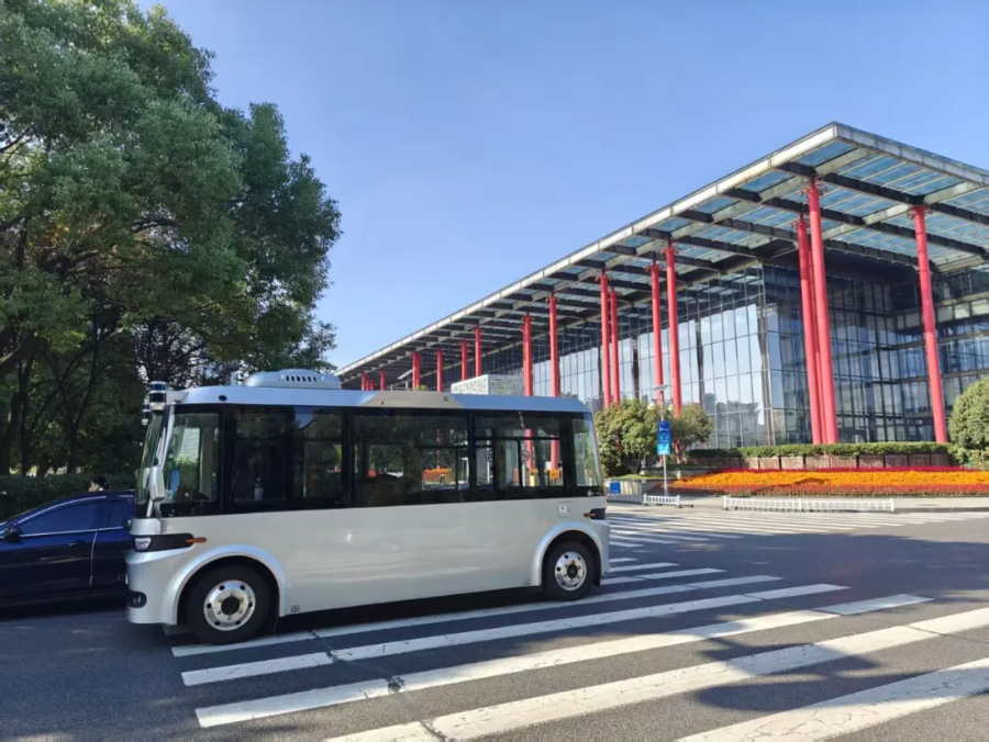 东风智能网联巴士行驶在武汉街头