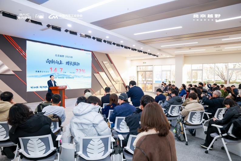 1月15日,北京越野智能工厂内,2026“看见中国汽车”媒体沟通会在此举行。北京汽车股份有限公司董事长王昊携核心管理团队亮相,交出了一份亮眼的2025年成绩单:全年销量突破20万辆,其中方盒子车型交付14.7万辆,同比增长72%,BJ40系列稳坐硬派越野市场头把交椅。这份成绩背后,是北京越野向“用户型企业”的深度转型,更是中国越野车从专业圈层走向大众生活的历史性跨越。