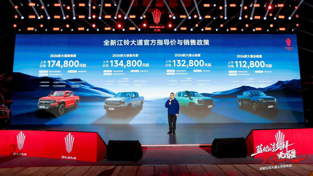 江铃汽车销售有限公司常务副总经理李闯现场发布了全新江铃大道的上市价格政策及专属权益,以实实在在的诚意回馈用户信赖。