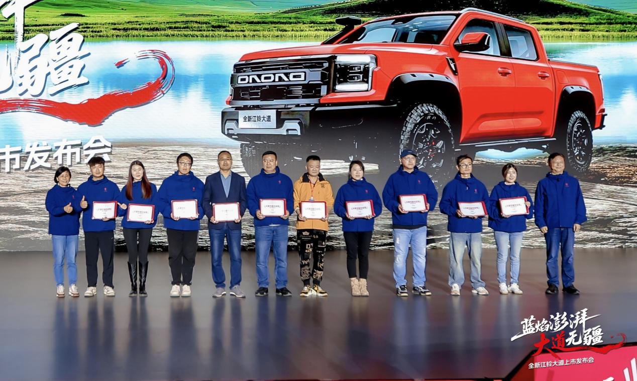 参与穿越挑战的车主代表驾驶全新江铃大道登台亮相。他们现场分享了从高原雪山到峡谷险滩、从容穿越炮弹坑与涉水路段的真实体验,全新江铃大道以全程零故障的稳定表现,赢得用户最朴实的信赖。为致敬这场无畏征程,江铃汽车授予十位车主代表“大道无疆见证官”荣誉,邱天高和熊春英现场颁发证书。