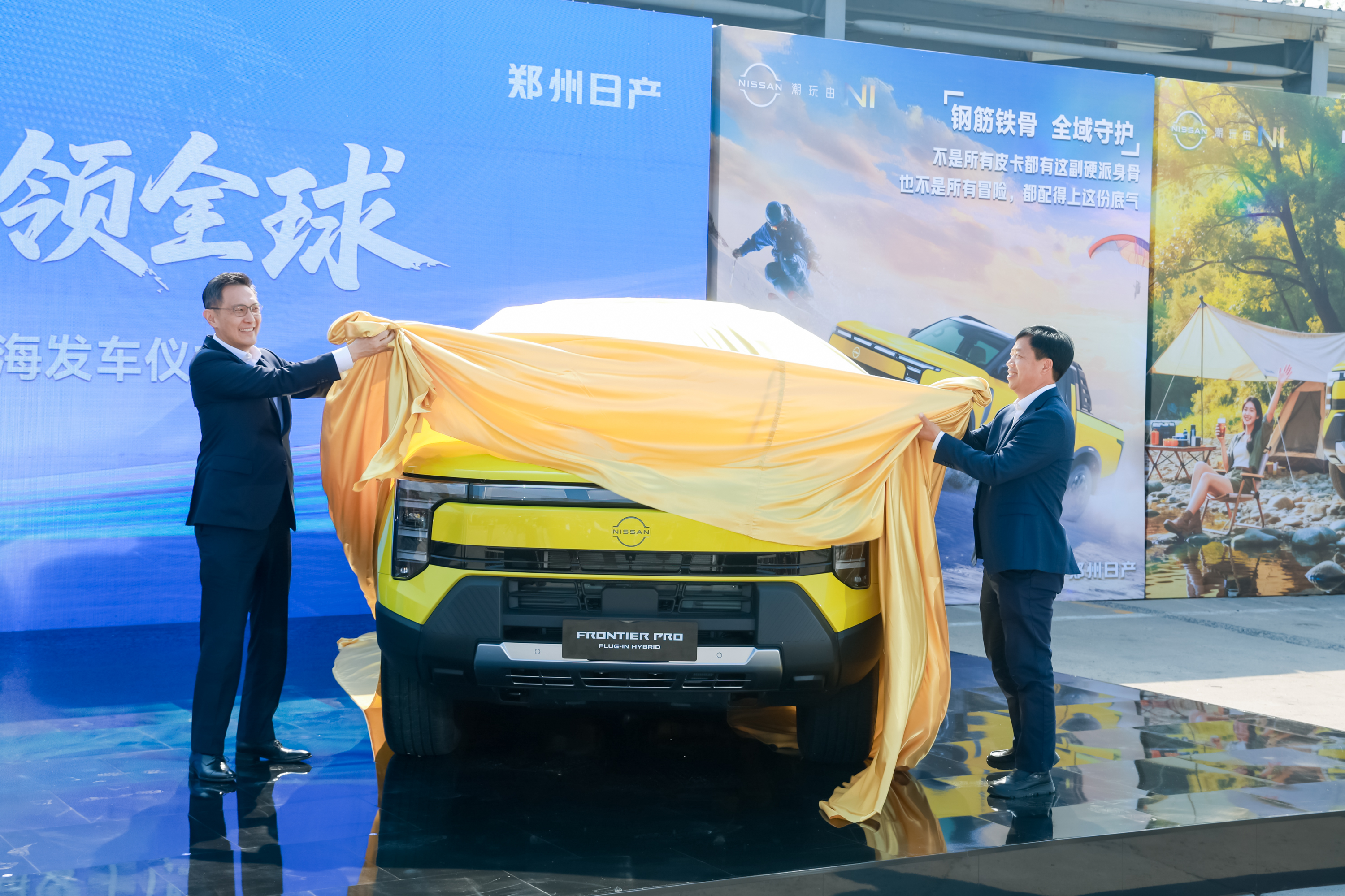 日产全球执委会委员兼中国区主席、东风汽车有限公司总裁马智欣,郑州日产总经理孙延伟 共同为出海车型揭幕