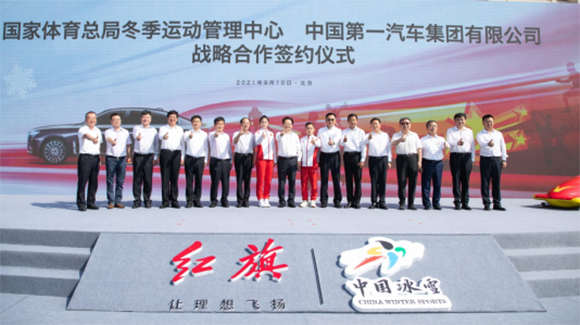 从2019年红旗HS5在长春马拉松上市,到2020年红旗成为中国女排战略合作伙伴,新红旗对体育事业的支持由来已久,展现出红旗与中国体育事业的精神共振,体现出民族品牌的博大胸怀与责任担当。本次签约冬运中心、将自主科技和汽车工业应用于国产雪车研发,象征着红旗在助力加快建设体育强国的道路上,又迈出了坚定的一大步。