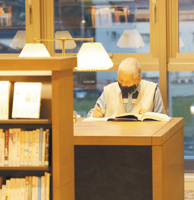 一位老年读者正在日本高梁市图书馆内阅读。(刘军国 摄)