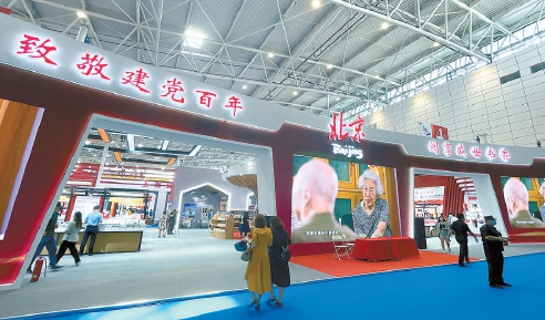 书博会开展首日,北京馆展区人头攒动,热闹非凡。在展区核心位置,一大批弘扬时代主旋律、庆祝中国共产党建党一百周年的精品出版物于建党百年主题图书展示区集中亮相。