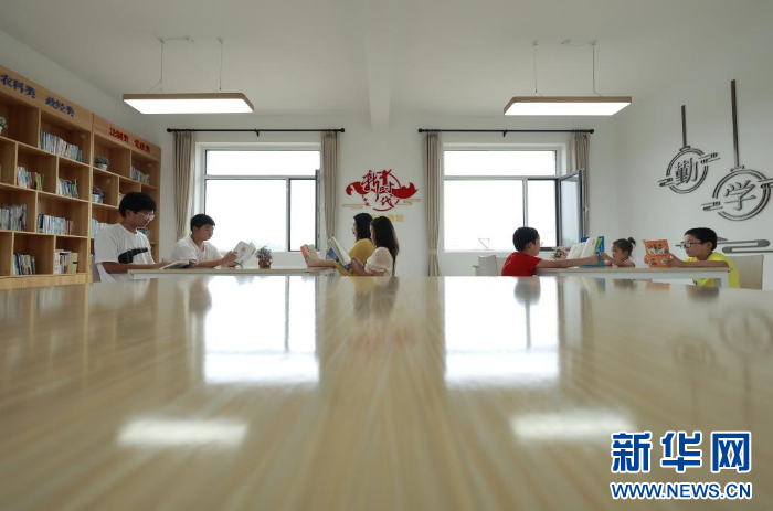 8月4日,小朋友在唐山市丰南区唐坊镇孙老庄村农家书屋读书学习。 为丰富暑期生活,唐山市丰南区依托农家书屋,组织青年志愿者开展“专业伴读”活动。孩子们在志愿者的指导和陪伴下,培养阅读兴趣、享受阅读快乐。 新华社发(李秀清 摄)pagebreak