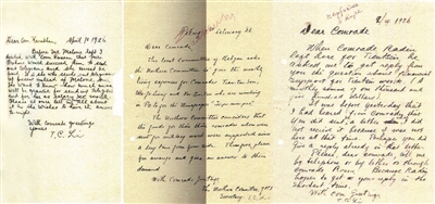 1926年李大钊致苏联驻中国大使加拉罕的三封英文函