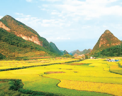我的家乡在贵州省长顺县,那里多姿多彩、斑斓绚烂的美丽秋色,已深深地烙印在我的脑海。金黄是秋天的底色,那是成熟的颜色,也是丰收的颜色。长顺的秋天,也是这样。只是贵州没法像平原那样,一望无边。但山野里的坝子,高高低低,起起落落,错落有致,非常富有变化之美。山野里欣赏金黄的稻田,往往会有山重水复疑无路,转过山口又见金黄一片的喜悦,这种豁然开朗与惊喜连连,是平原上感受不到的。