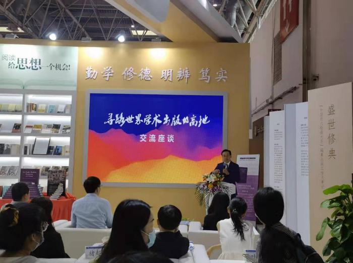 新书发布后,与会嘉宾共同就“寻路世界学术出版的高地”这一主题展开交流座谈。潘群、袁亚春、中国科技出版传媒股份有限公司董事会秘书张凡、中国社会科学院古代史研究所副所长邬文玲、中国社会科学院经济研究所副研究员常旭做了主题发言,就如何坚持学术出版品质、推动科技出版从“走出去”到“走进去”、如何讲好中国故事等方面做了深入的探讨。
