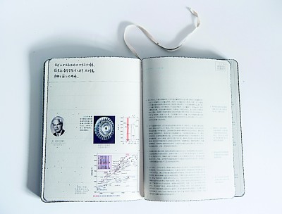 书籍设计的着眼点是“视觉对话”。在第九届“全国书籍设计艺术展”的获奖作品中,科技类金奖是由尹琳琳设计的《材料图传——关于材料发展史的对话》。该书的6个外立面全部处理成黑色,封面图形运用声波的抽象变化组成文字。在黑纸板上起凸、烫印声波的线形,产生不同的光泽与质感,使节奏和韵律跃然纸上。内文则选用富有质感的环保纸,函套、书口、书签的处理丰富了图书的层次和变化。在信息编排上,插图和对话被分别排布在对开页面上,以一面插图、一面对话的形式阐述着文本内容。插图页通过设计变化突出历史人物,明确历史年代,并把知识点提取出来以手写的形式强化。每个页面都撒有细小的圆点图案,暗示了材料进步的内在逻辑和相互关联。