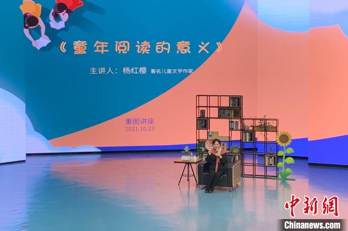 图为杨红樱现身重庆图书馆,以“童年阅读的意义”为主题作演讲。 邓蕊 摄
