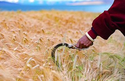 秋后无生田,开始动刀镰。随着水稻次第变黄,沉甸甸的稻穗压弯了茎秆,也把农人的肩膀压得瓷瓷实实。待到天放晴,种田的老把式第一个下田,粗壮的大手攥住几棵稻禾,用弯如新月的镰刀割下第一行搁在田埂上,后面的人如是依次把稻禾放下……那整齐的稻茬似大地的琴弦,伴着蛩鸣演奏着丰收的乐章。