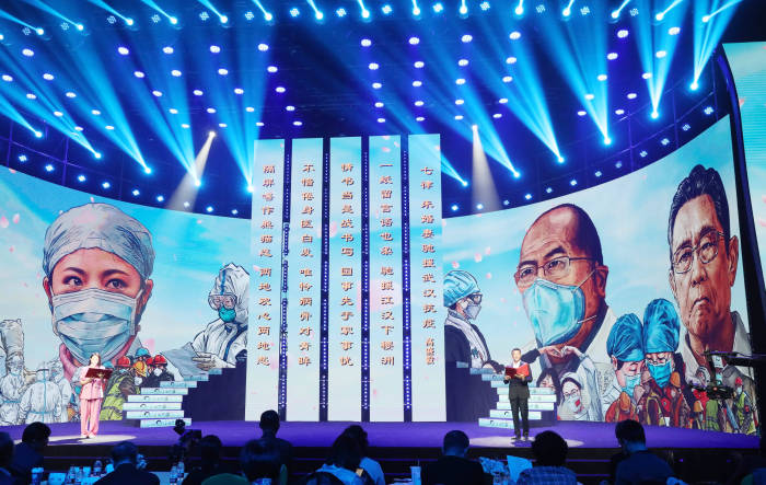为了体现这一主题,本届颁奖典礼的文艺演出做了精心设计,以建党百年征程为主线,分为“艰苦征程”“浪漫征程”“辉煌征程”三个篇章,通过开场鼓、歌曲、舞蹈、朗诵等形式,以“诗词”为线索,回顾了中国共产党成立100年来波澜壮阔的光辉历程。