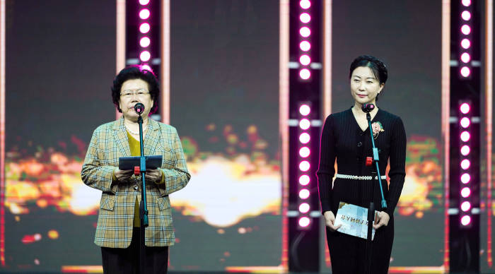 陈文玲、包岩宣读中华女子诗词大会获奖名单。主办方/供图