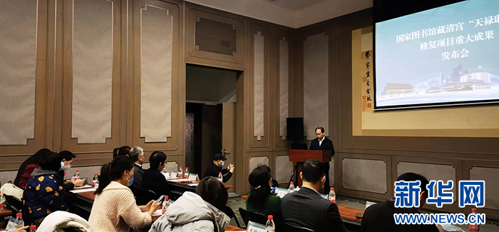 1月7日上午,国家图书馆召开馆藏清宫“天禄琳琅”修复项目重大成果新闻发布会,宣告历时8年之久的国家图书馆馆藏清宫“天禄琳琅”修复项目取得圆满成功,正式结项。国家图书馆馆长、国家古籍保护中心主任熊远明介绍了该项目基本情况及重要意义。国家图书馆副馆长、国家古籍保护中心副主任张志清主持会议。国家图书馆古籍馆负责同志及有关专家介绍了“天禄琳琅”修复项目组织情况、“师带徒”人才培养情况,以及修复过程中遇到的难点和解决方法。